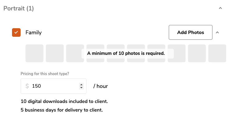 Our product is built by photography professionals for professional photographers, we listen to our customers and develop the best product possible to help you get more bookings and grow your business. Adding shoot types is taking one more step for you to diversify your portfolio, attract a more diverse clientele and ultimately getting you booked!
